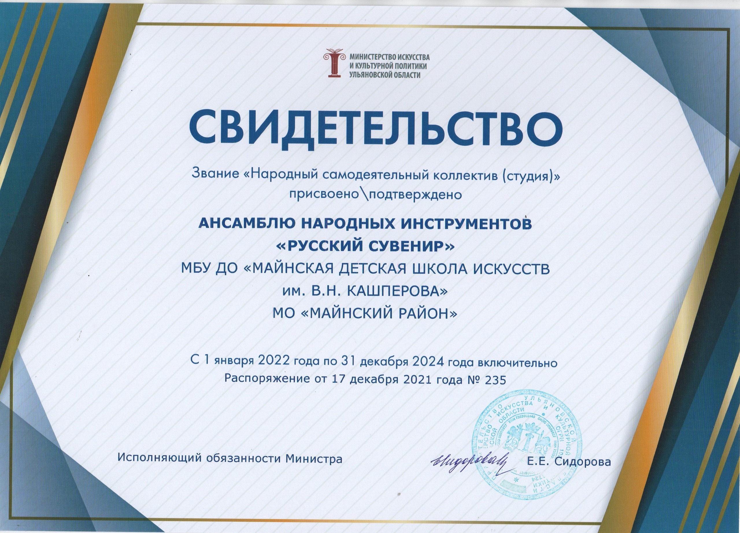Ансамбль русских народных инструментов «Русский сувенир», рук. Н.А.Полетаева защитил звание «Народный» впервые!