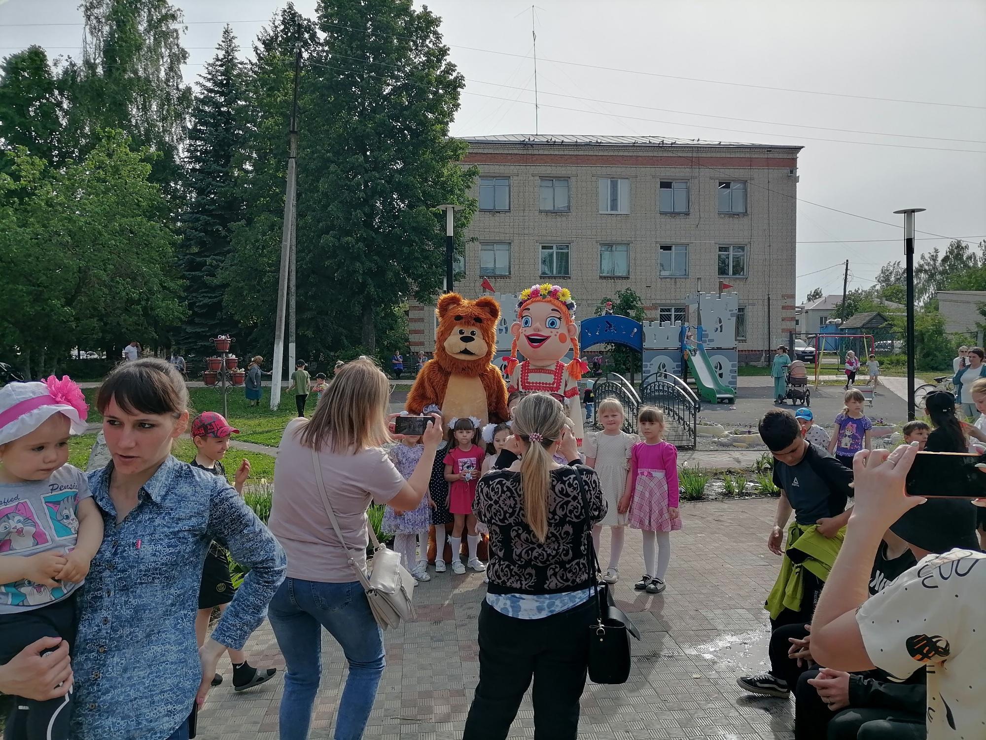 Дети с удовольствием играли с ростовыми куклами Мишей и Машей.